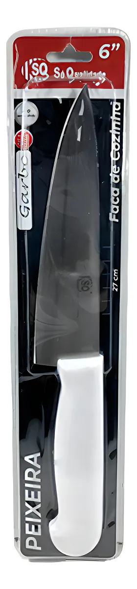 Uma faca de cozinha com lâmina de 6 polegadas em aço inox e cabo de plástico de qualidade geralmente apresenta as seguintes características técnicas e benefícios